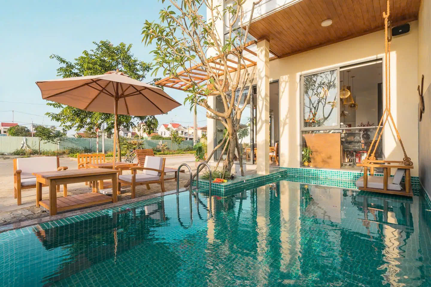 Experience the ultimate beachfront retreat in this stunning European-style villa, located just 400 meters from the beach in the An Bang area, right next to Sol An Bang Beach Resort. Designed for families, groups of friends, and company team trips, this private, spacious villa offers the perfect blend of comfort, entertainment, and relaxation.